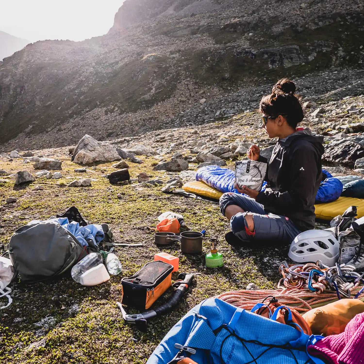 Gefriergetrocknete Mahlzeit: Nudeln in einer Sauce aus Cheddar, Pecorino Romano und Gruyère-Käse