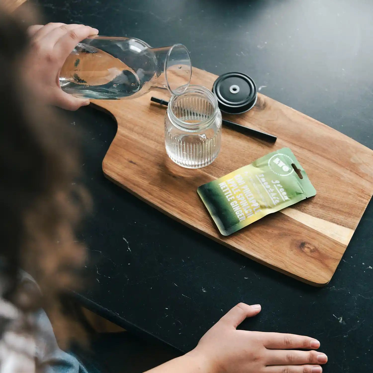 SCHAUEN SIE SICH UNSERE ZUTATENLISTE GENAUER AN. SIE IST REIN UND EINFACH. ES IST - EIN CLEAN LABEL gefriergetrocknete Früchte in Pulverform (Apfel 36,6 %, Kiwi 36,6 %, Ananas 20 %) Spinat 3 %, Brennnessel 3 %, Ingwer 0,8 %.