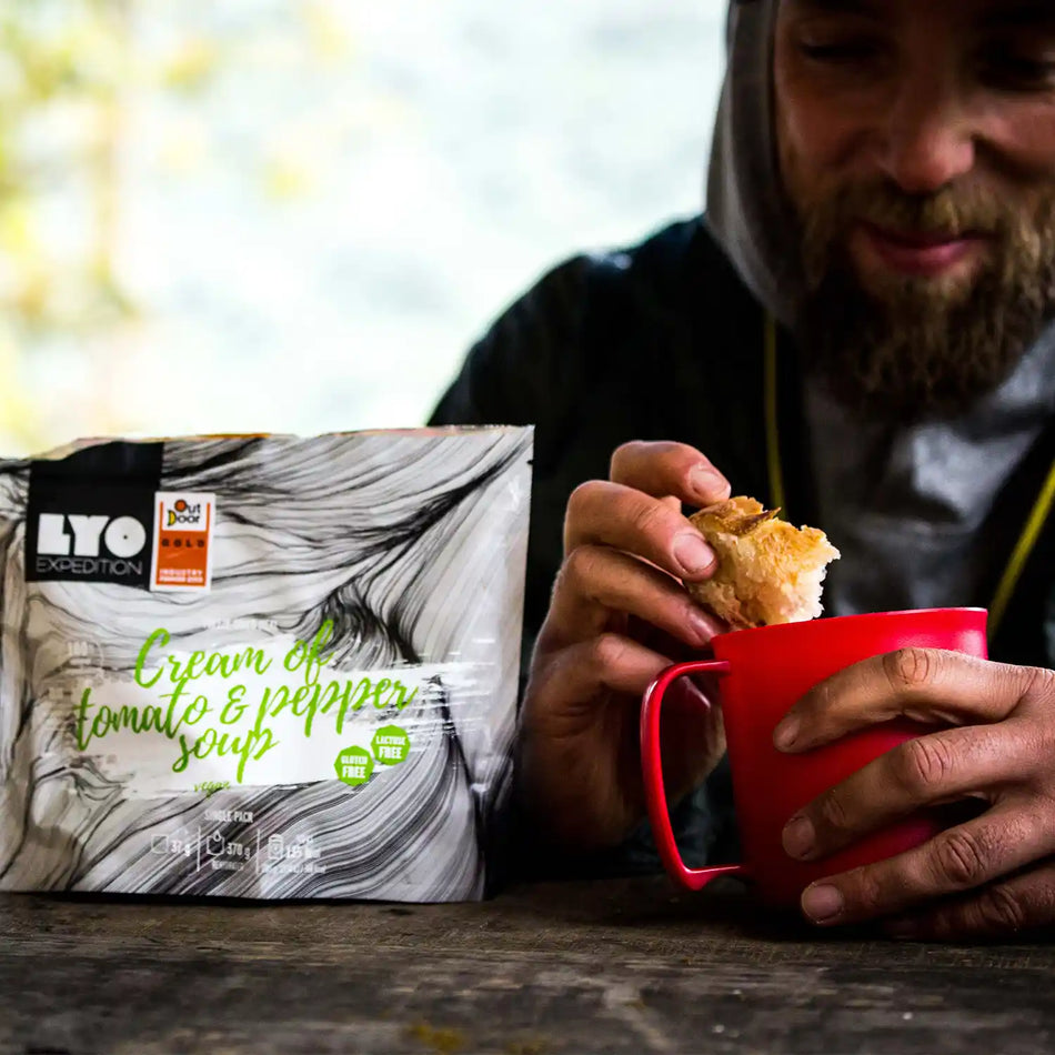 Gefriergetrocknete Suppe: Tomaten-Paprika Cremesuppe mit Reis