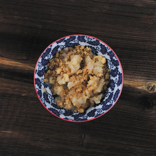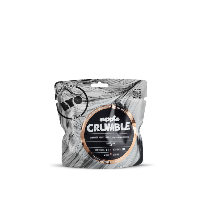 La tarte aux pommes sans la tarte ! Des pommes sucrées rôties avec une généreuse pincée de cannelle, garnies d'un crumble traditionnel croquant, rappellent les moments passés avec les grands-parents.