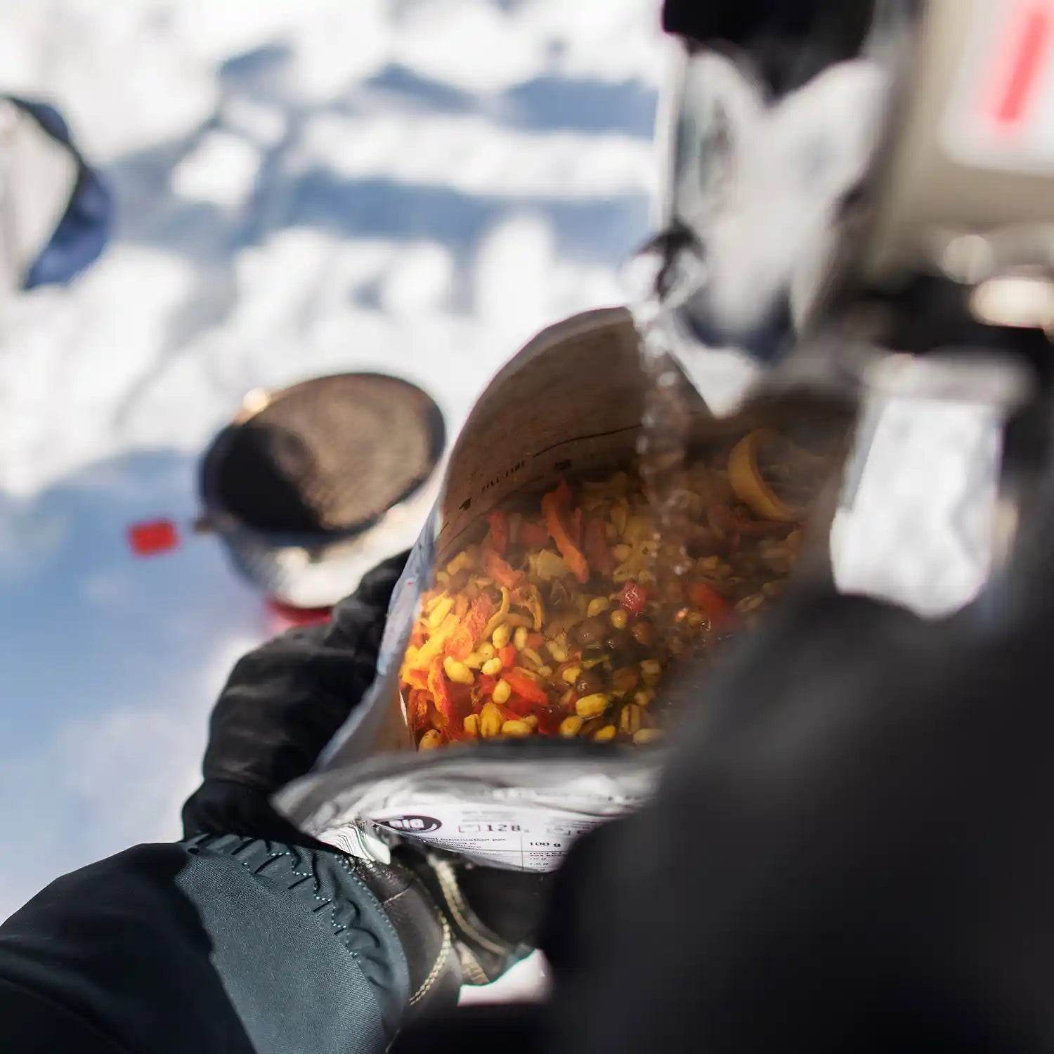 Freeze-dried meal: Pearl barley risotto with vegetables and avocado mousse
