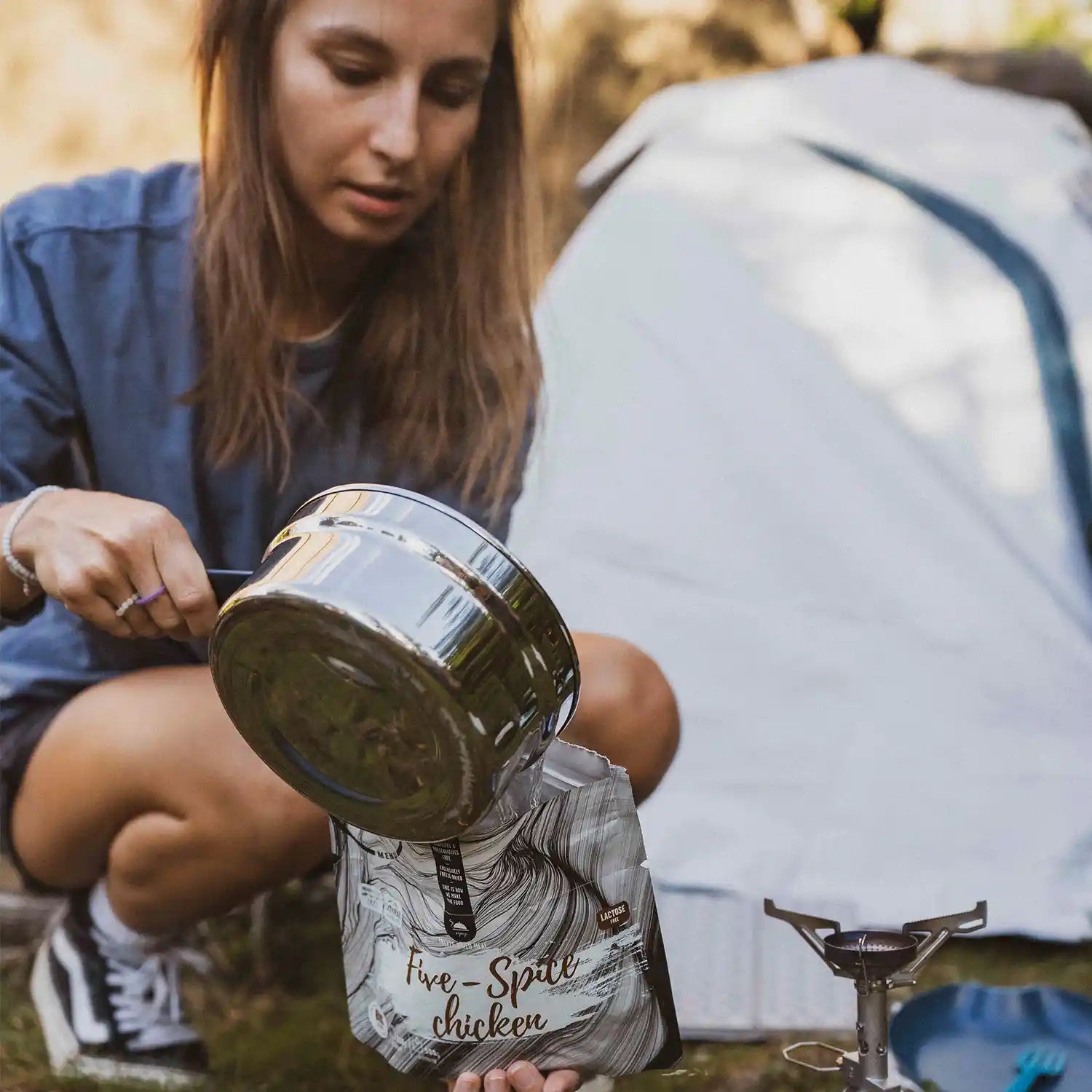 Comida liofilizada: Filete de pollo a las cinco especias con verduras, champiñones y arroz